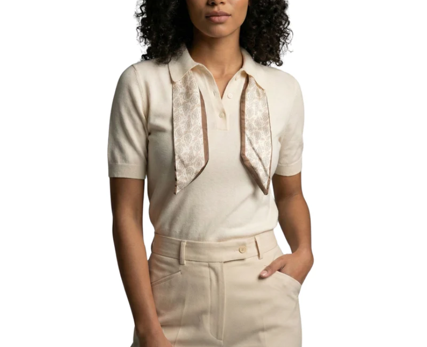 Short Sleeve Beige Pullover with Tiny Scarf in Collar