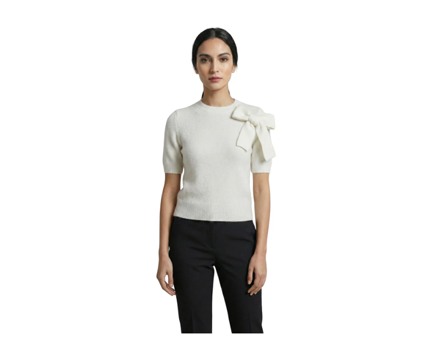 Be the first to review “Short Sleeved White Sweater With Ribbon Design”