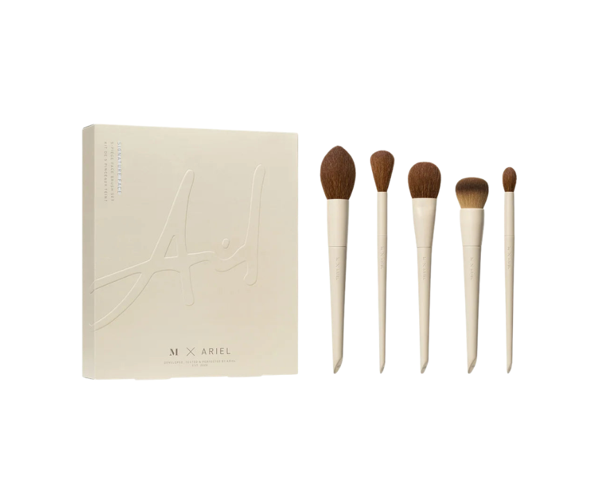 The Morphe X Ariel Signature Face 5 Piece Brush Set features a hand-selected collection inspired by the people who shaped Ariel’s artistry. This set includes brushes for setting, foundation, contour, precision, and blush, each designed to deliver seamless blending and flawless application. Crafted with a mix of natural and synthetic bristles, the brushes provide versatility and professional results for every makeup routine.