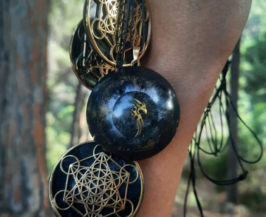 This handcrafted orgonite pendant merges Sacred Geometry, Dragon Energies, and advanced Orgone principles to create a powerful EMF protection tool. Designed to balance and protect the biofield, it helps transmute dense energies into positive flow. Wear it close to your heart for daily energetic alignment or pair it with minimalist chains for a bold, grounding statement