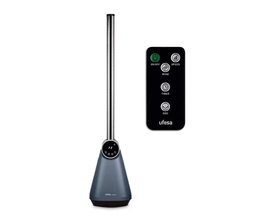 Stay cool with this 97 cm Silent Bladeless Fan, offering 3 speeds, 3 air modes, and 40° left/right oscillation for even airflow. Features include an LED touch screen, remote control, and efficient 50W power, making it ideal for bedrooms, offices, or living spaces for quiet and customizable cooling.