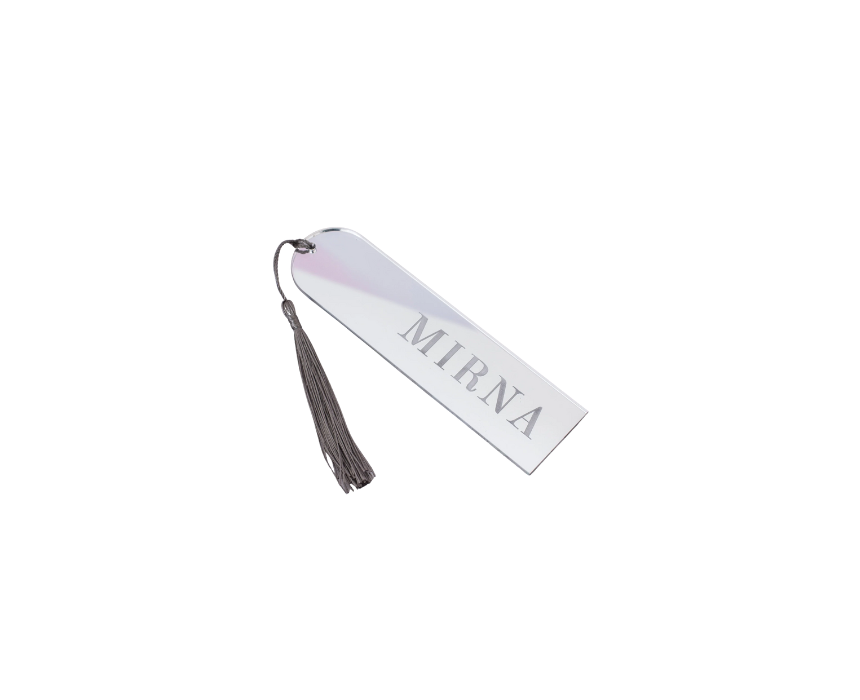 The Silver Acrylic Bookmark is a sleek and modern reading accessory that can be personalized with your name for a bespoke touch. Measuring 15 by 3.8 cm, this durable bookmark features a stunning metallic silver finish and includes a coordinated tassel to ensure you never lose your place in your favorite book or planner. To style this elegant piece, tuck it into a black leather journal or a professional textbook and let the shimmering silver tassel hang gracefully over the spine to create a sophisticated and high contrast look for your study space.
