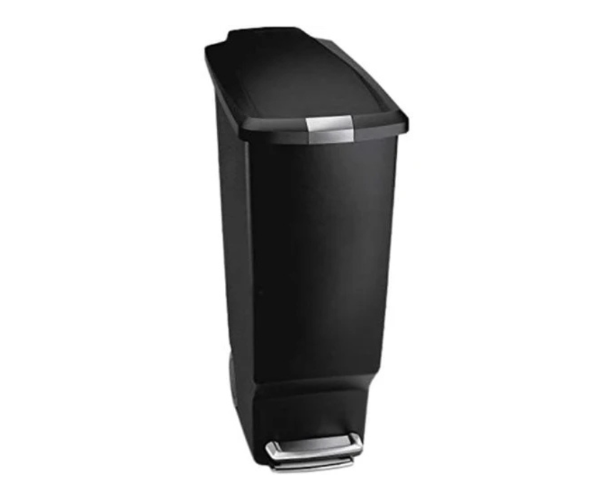 The SimpleHuman CW1361 Slim Pedal Bin in black features a durable plastic body with a 40L capacity and hands free pedal for hygienic, effortless waste disposal. Its slim, space-saving design fits easily into narrow kitchens or utility rooms and can be styled neatly against cabinets for a sleek, modern look.