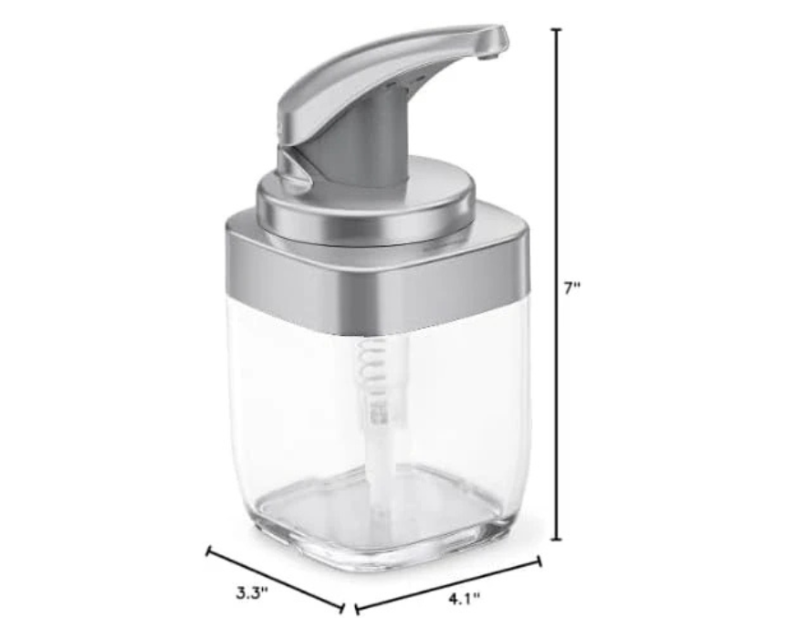 The SimpleHuman Square Push Pump Soap Dispenser holds 440ml / 15 oz of liquid soap and features a durable, high quality design for easy, mess free dispensing. Its square shape and modern finish complement any bathroom or kitchen decor while providing reliable daily use. Style note: not worn, but looks sleek on countertops or mounted near sinks for organized, stylish soap access.