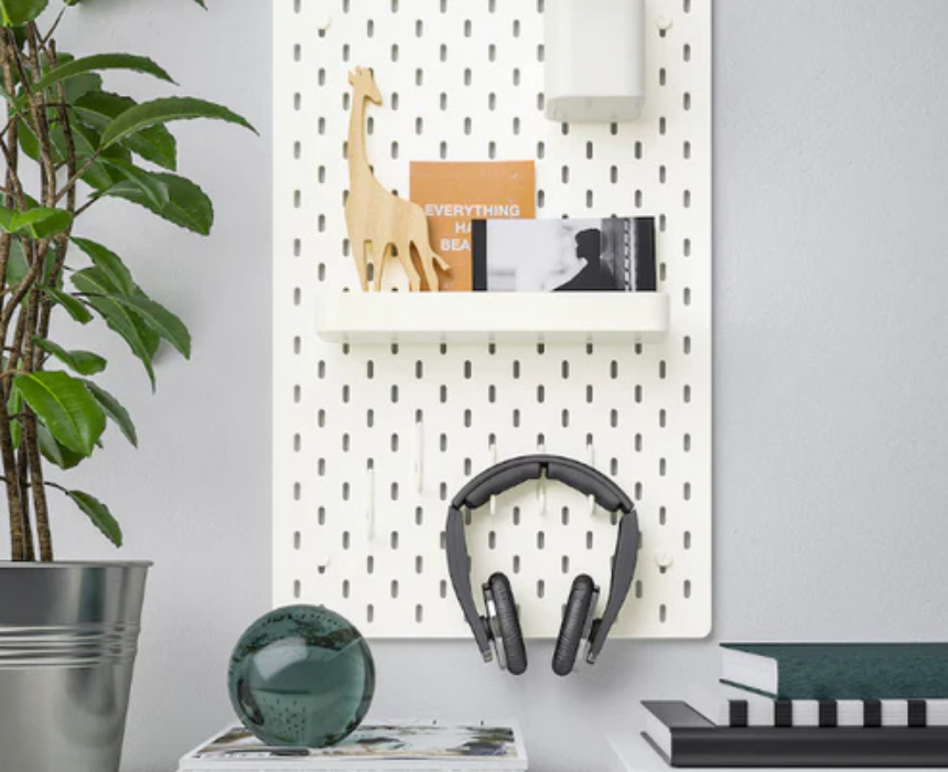 This pegboard shelf is perfect for storing phones, wallets, sunglasses, and other essentials you want within easy reach. The raised edge keeps your items securely in place, while the tool free design makes it easy to attach and reposition as needed. Ideal for creating a personalized and organized storage solution in any room.
