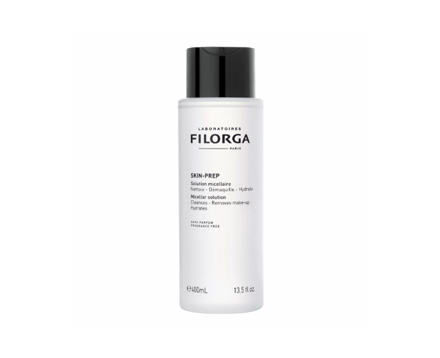 Filorga Skin-Prep Micellar Solution is a 3-in-1 cleansing water that gently removes makeup, cleanses, and hydrates all skin types. Enriched with trehalose and rhamnose, it lifts impurities and excess oil while maintaining moisture, leaving skin fresh and comfortable. Apply with a cotton pad over face and eyes for an easy, no-rinse cleanse that preps skin for your skincare routine.