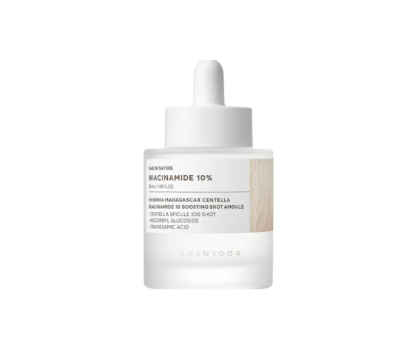 Skin1004 Niacinamide 10 Boosting Shot Ampoule 30 ml is a high-potency serum designed to brighten skin, reduce dark spots, and even out skin tone. Apply a few drops onto cleansed skin, gently pat until fully absorbed, and follow with moisturizer for a radiant, healthy-looking complexion. Suitable for daily use in morning or evening skincare routines.