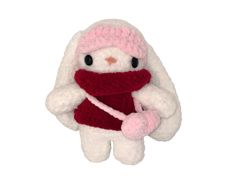 Embrace the ultimate comfort with the Sleepy Cozy Fluffy Bunny. This 26cm x 23cm crochet plushie features a soft, fluffy texture designed for maximum snuggles. Its sleepy aesthetic makes it the perfect bedtime companion for little ones. A unique feature of this bunny is the ability to order customized clothes, allowing you to change its outfits and personalize its look. Handcrafted with premium yarn, it is built for durability and endless cozy adventures.
