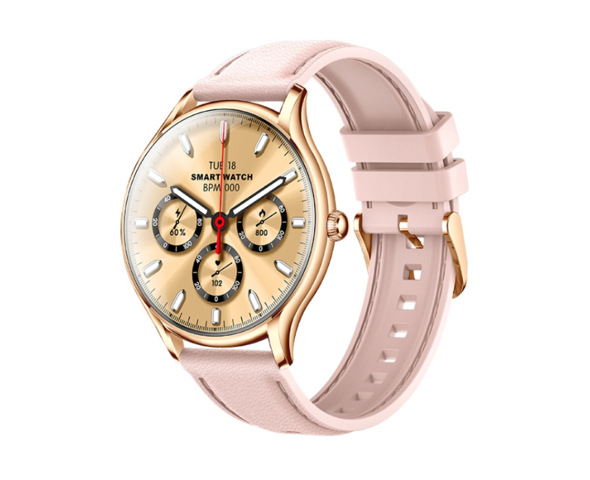 The Smart Watch Women M9048 in pink combines elegance and functionality, featuring fitness tracking, heart rate monitoring, and notifications directly on the wrist. Its lightweight design and adjustable strap ensure comfort for daily wear, while the soft pink color adds a stylish and feminine touch. Perfect for active women who want to stay connected and fashionable at the same time.