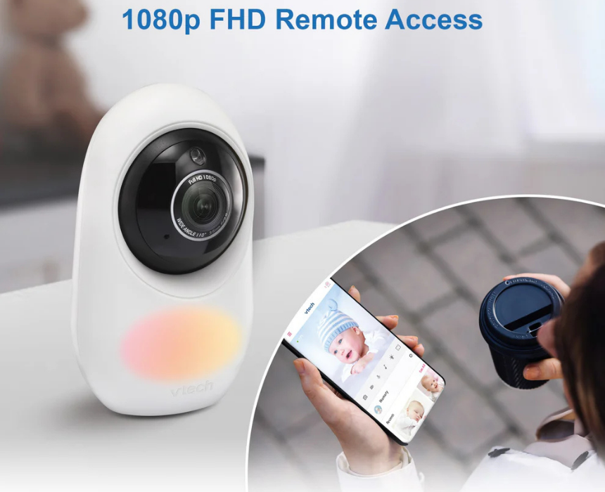 This smart baby monitor features a 2.8-inch display and a Full HD 1080p camera, providing clear and detailed video of your little one. With remote access via smartphone or tablet, you can monitor your baby from anywhere using a dedicated app, with no subscription required.
