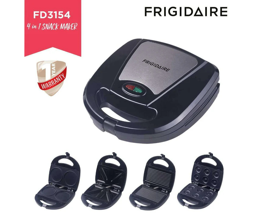 The Frigidaire 750W Sandwich Maker lets you quickly prepare sandwiches, pancakes, donuts, and grilled fish, meat, or vegetables in minutes. Featuring detachable plates, a sleek stainless steel body, light indicators for cooking progress, and dishwasher-safe surfaces, it offers convenience and versatility for everyday kitchen use. Simply plug in, pour or place ingredients, and enjoy perfectly cooked results in up to 3 minutes.