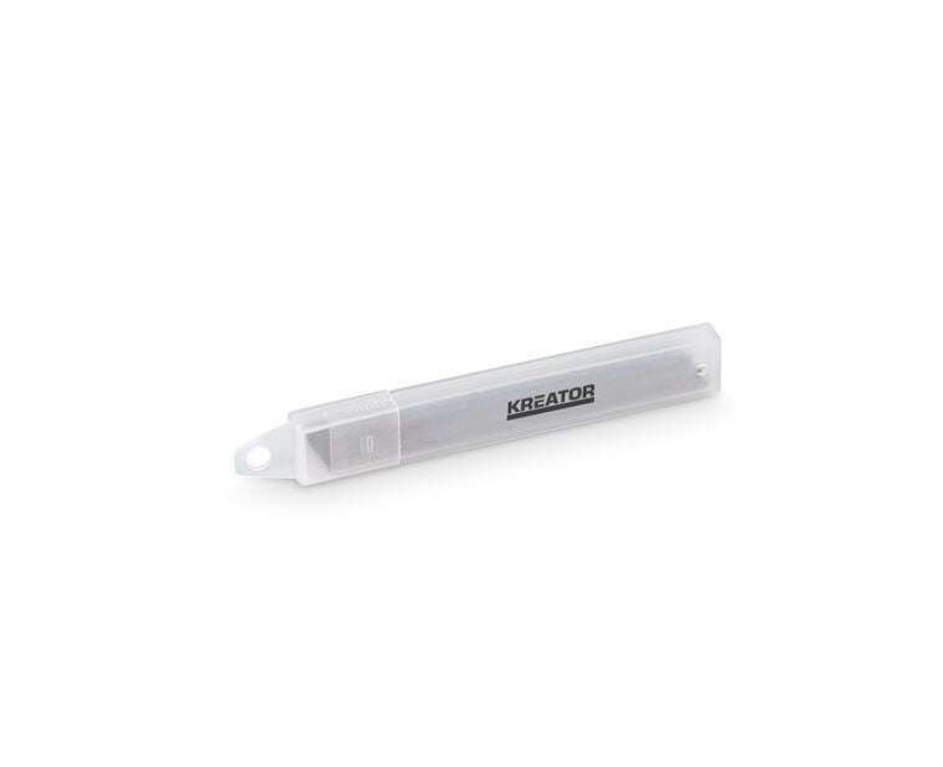The 10-piece Kreator Replacement Snap-Off Blades set features 9mm wide blades compatible with most standard box cutters. Perfect for cutting materials like cardboard, vinyl, and carpeting, these durable blades provide clean, precise cuts and are ideal for both DIY projects and professional use.
