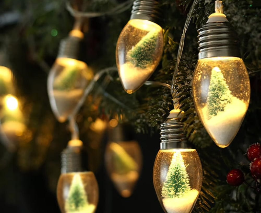 Add a magical glow to your holiday décor with this Christmas Tree Snow Globe String Light featuring 10 LED bulbs along a 2 m strand. Perfect for windows, shelves, bedrooms, or festive displays, it creates a warm and charming Christmas atmosphere.