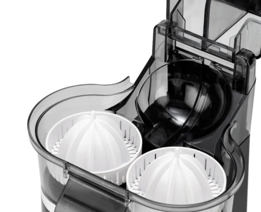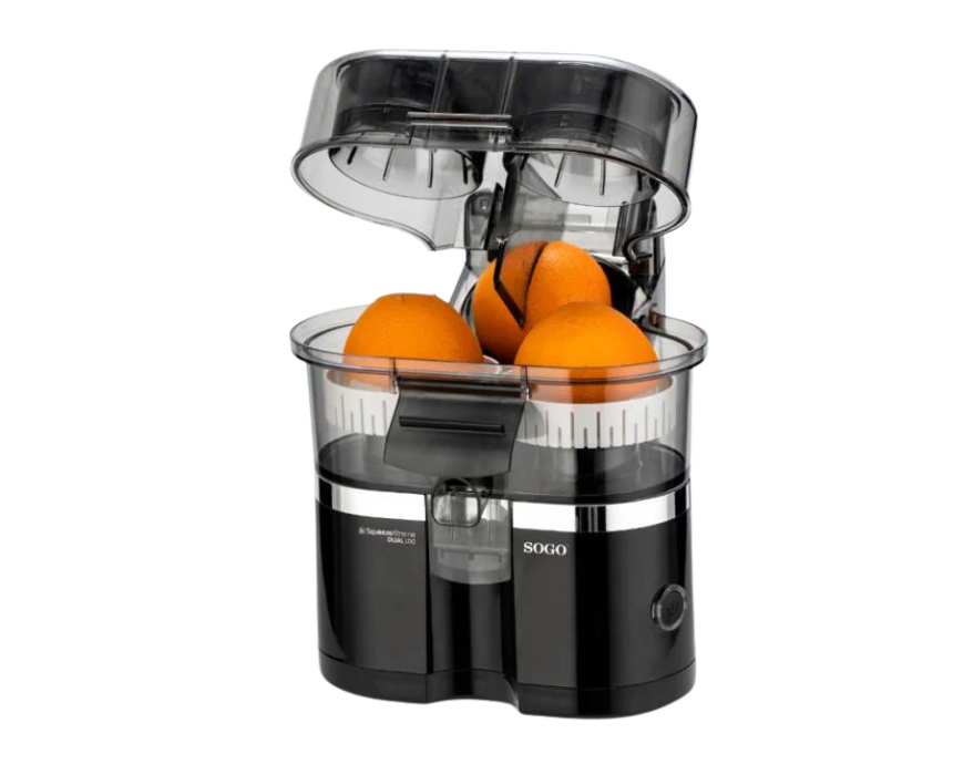 The Sogo SS5299 Double Citrus Juicer features a 100W motor, automatic lid, and built-in orange cutter for fast and convenient juicing of two fruits at once. Perfect for modern kitchens, it can be styled by keeping it on the countertop with the sleek design and visible lid for a clean, professional look.