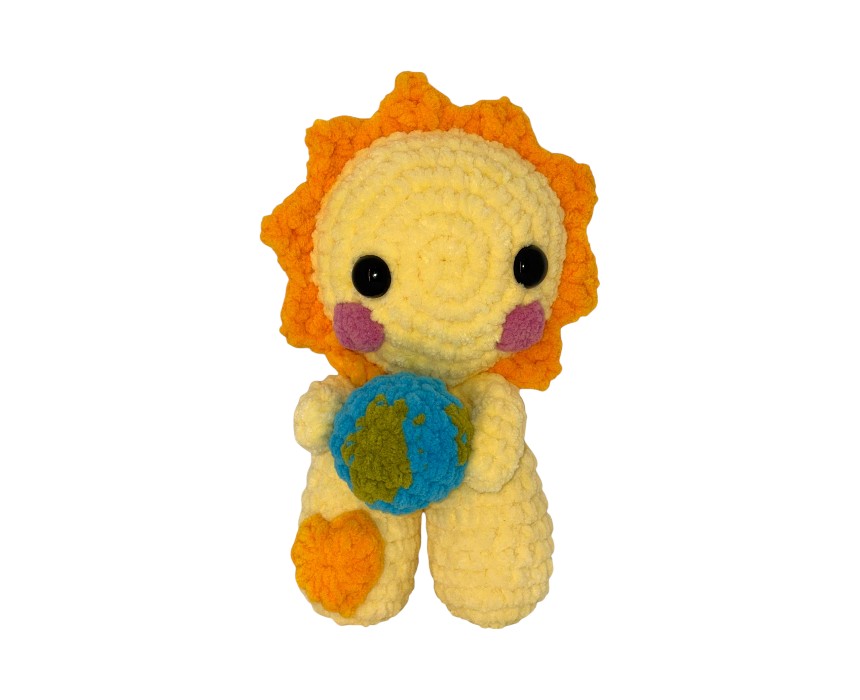Light up the room with the Solar Friend Sun. This 24cm x 14cm bright yellow crochet plushie features the Sun holding onto a mini Earth. It is a warm and cheerful addition to our Solar Friends collection, designed to spark curiosity about our solar system. The premium yarn is soft to the touch, ensuring a comfortable feel during play or rest. A radiant gift that combines education with handmade quality, perfect for brightening any child’s day or desk.