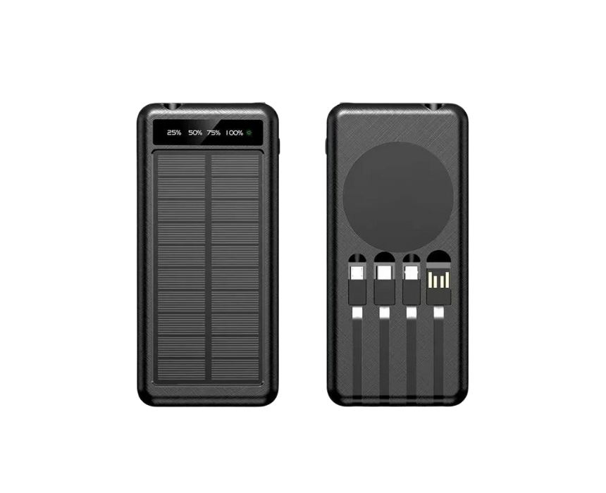 Stay powered on the go with the Solar Wireless Power Bank 10,000 mAh, featuring both solar and USB charging for ultimate flexibility. Compact and lightweight, it includes dual USB outputs, a high-efficiency polymer battery, integrated charging cables, and a built-in LED torch, making it ideal for outdoor adventures, travel, or daily use. Certified safe with UKCA and PSE standards, it’s waterproof, durable, and designed for reliable, eco-friendly charging anywhere.