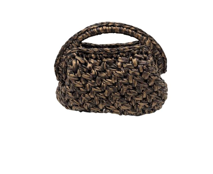 The Solea in Espresso is a handwoven clutch crafted from metallic leather threads, blending black, gold, and silver in a bold geometric pattern. Compact and radiant, it works as a statement accessory for both casual and evening outfits. Perfect for fashion-forward outings, celebrations, or day-to-night transitions, it adds a touch of artistry and luxury to any ensemble.