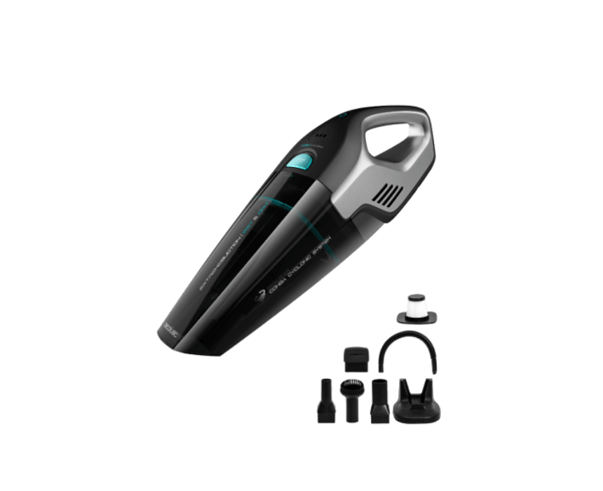 This portable handheld vacuum cleaner comes with an extra filter, five practical accessories, and a convenient charging base. Powered by a 14.8V battery and 100W motor, it delivers efficient suction for quick clean-ups at home, in the car, or on the go. Compact and lightweight, it is easy to store and ideal for versatile everyday use.