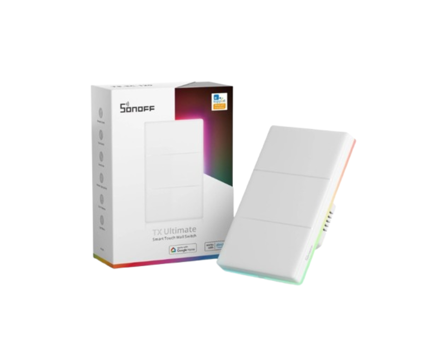 The Sonoff TX Ultimate Wall Switch 120 Type provides smart lighting control with touch sensitivity, app integration, and support for voice assistants. It offers customizable lighting effects and automation options to enhance everyday home convenience. Install it in place of a standard switch to enjoy modern, responsive, and connected lighting control throughout your space.