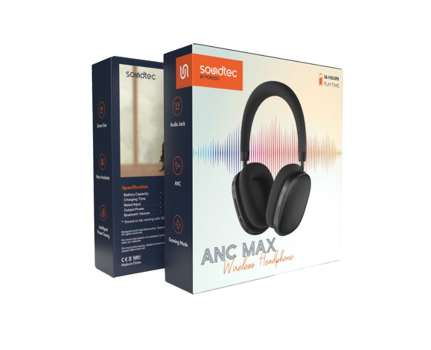 The Soundtec Airpodmax ANC Headphone Gold PD STWLEP023 GD delivers immersive sound with active noise cancellation in a premium over ear design. Styled with a sleek gold finish, it offers all day comfort for travel, work, or leisure and pairs effortlessly with smart casual or luxury inspired looks while providing a secure and comfortable fit.