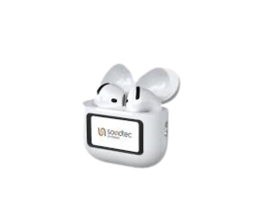 The Soundtec TWS ANC ENC Earphone with Touch Screen White PD STWLEP040 WH delivers immersive sound with active noise cancellation and environmental noise control in a sleek true wireless design. Its comfortable in ear fit and intuitive touch controls make it ideal for travel, work, or daily use while complementing casual and modern outfits effortlessly.