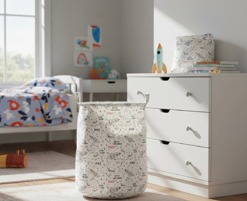 This space themed round storage basket measures 40 x 40 x 50 cm and is perfect for kids’ bedrooms or play areas. Durable and easy to move, it helps organize toys or other items while adding a fun and playful décor element. Sturdy and functional, it combines practicality with a vibrant design.