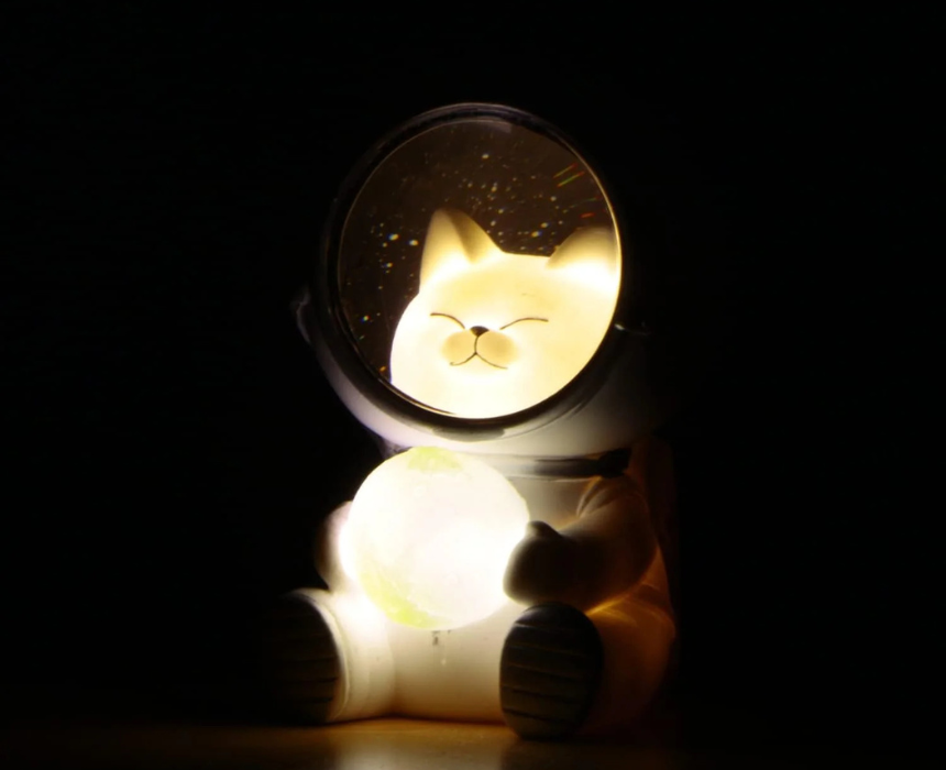 The Cute Spaceman Night Light features adorable animal astronauts with a starry sky design, bringing charm and warmth to any room. Made from durable resin with safe, warm lighting, it creates a cozy atmosphere ideal for children’s bedrooms or living spaces. Powered by 3 LR1130 batteries (not included), this decorative night light makes a perfect gift for birthdays, holidays, or special occasions.