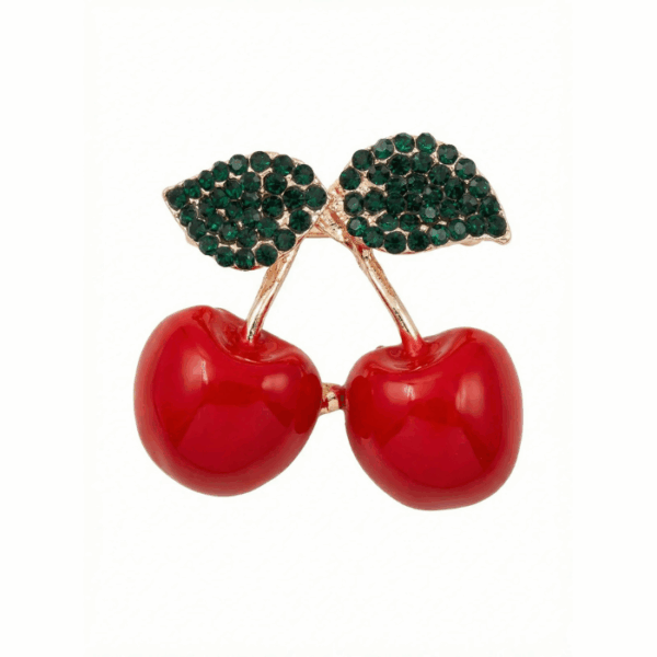 This sparkling double strawberry brooch features vibrant enamel detailing paired with glittering crystals for a playful and eye-catching look. Crafted to add charm and color, it can be styled on jackets, dresses, scarves, or handbags to enhance any outfit. A versatile accessory that brings a fun and elegant touch to both casual and special occasion ensembles.