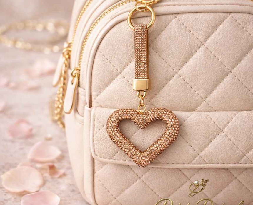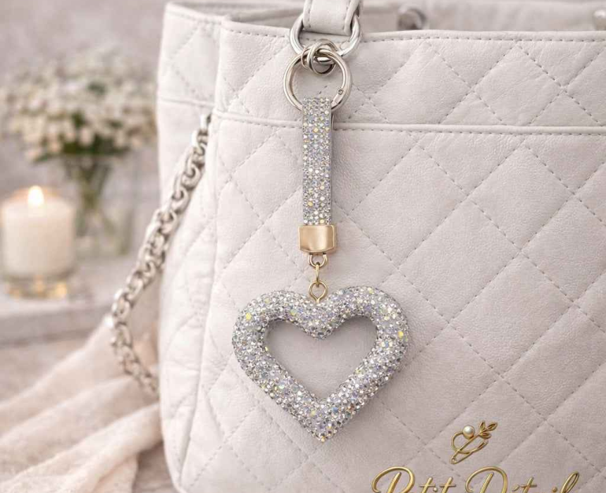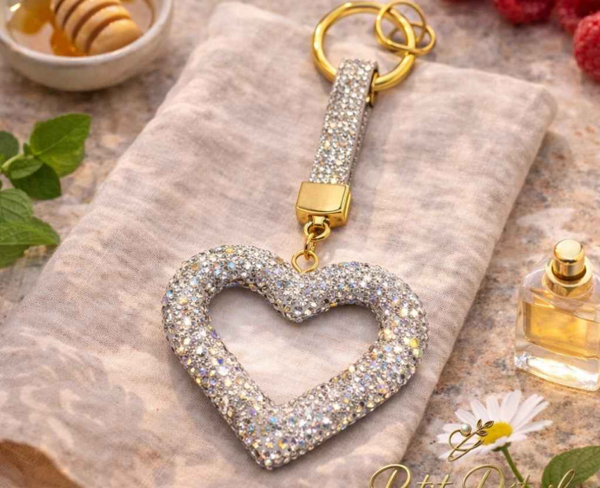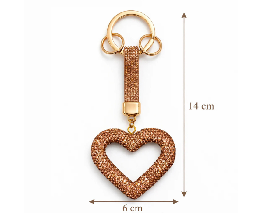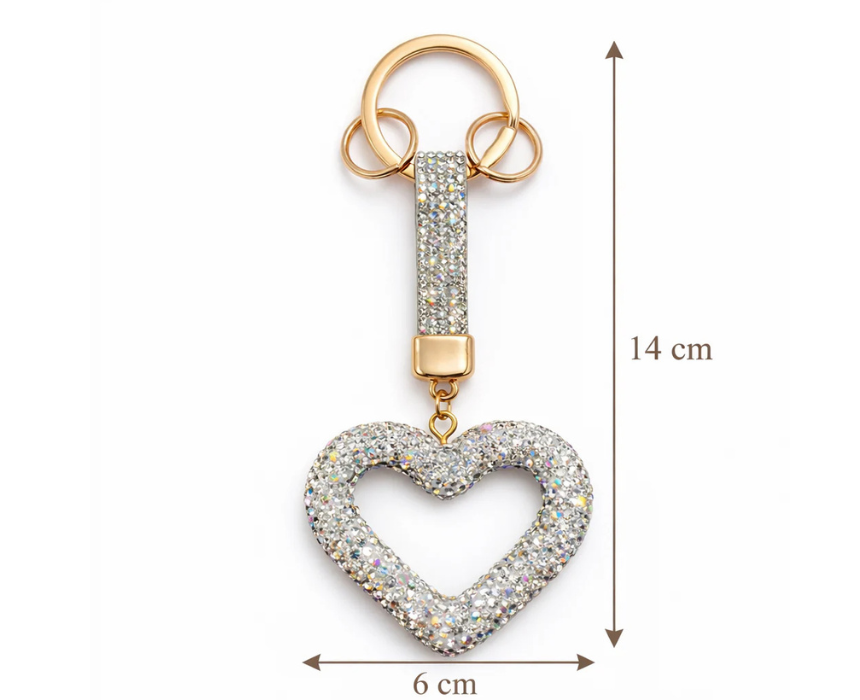 This sparkling heart charm keychain features a glossy decorative design with shimmering accents and a durable metal clasp for secure everyday use. Ideal for attaching to handbags, backpacks, or keys, it adds a playful and stylish accent to any outfit. Lightweight and versatile, it is perfect for personal use or as a charming gift.