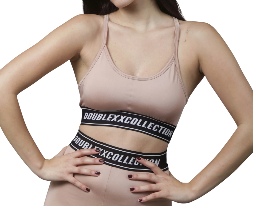 The XXATHLTCS SB2 sports bra by doublexxcollection is a women’s slim-fit athletic essential crafted from premium heavy scuba material. Featuring a unique open-back design with conjoined X-shaped straps, built-in removable pads, and a wraparound waistband branded with doublexxcollection, it delivers both style and support. Available in salmon pink, it adds a fresh and feminine touch to your active wardrobe. Pair it with leggings, joggers, or oversized tees for workouts or athleisure styling.