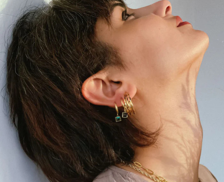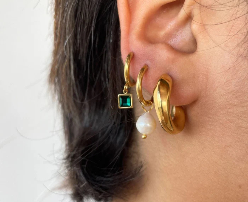 Square Stone Huggies Earrings feature a sleek close fitting design accented with a geometric stone detail that adds a modern and refined touch. Lightweight and comfortable for all day wear, they can be styled alone for a subtle statement or paired with other earrings for a layered ear look. Ideal for both casual and dressy outfits, they bring a polished and contemporary finish to any style.