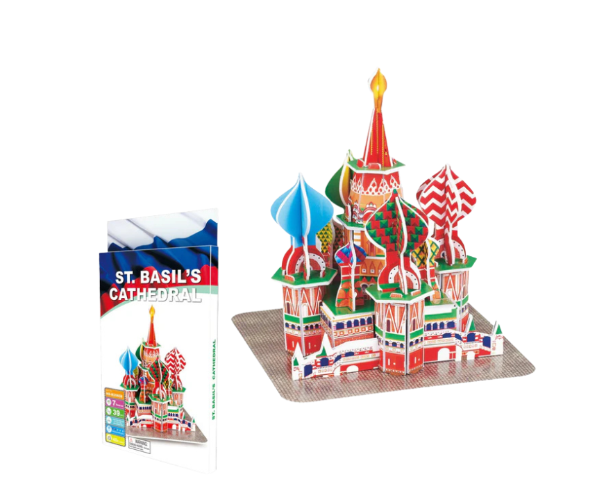 The St. Basil’s Cathedral 3D Puzzle Small is a compact architectural model that showcases the cathedral’s colorful domes and intricate design in an engaging and educational build. Once assembled, it can be styled as a vibrant decorative accent on desks, shelves, or display cabinets, adding a cultural and travel-inspired touch to any space. Its small size makes it ideal for gifting, collecting, or easy display.
