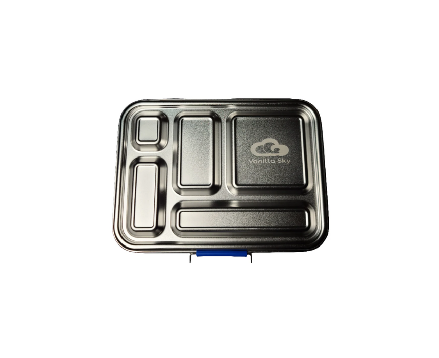 Introducing the Vanilla Sky Lunch Box, designed with five compartments to easily pack a variety of foods. The spacious main section fits sandwiches, salads, or meals, while the smaller compartments are perfect for snacks, fruits, or treats. Featuring a removable silicone inlay for a secure, leak-resistant seal, it eliminates the need for disposable wraps or dividers. Made of high-quality stainless steel, it is eco-friendly, durable, and dishwasher safe. Dimensions: W 26 cm x H 19 cm x D 5 cm. Not suitable for microwave use.