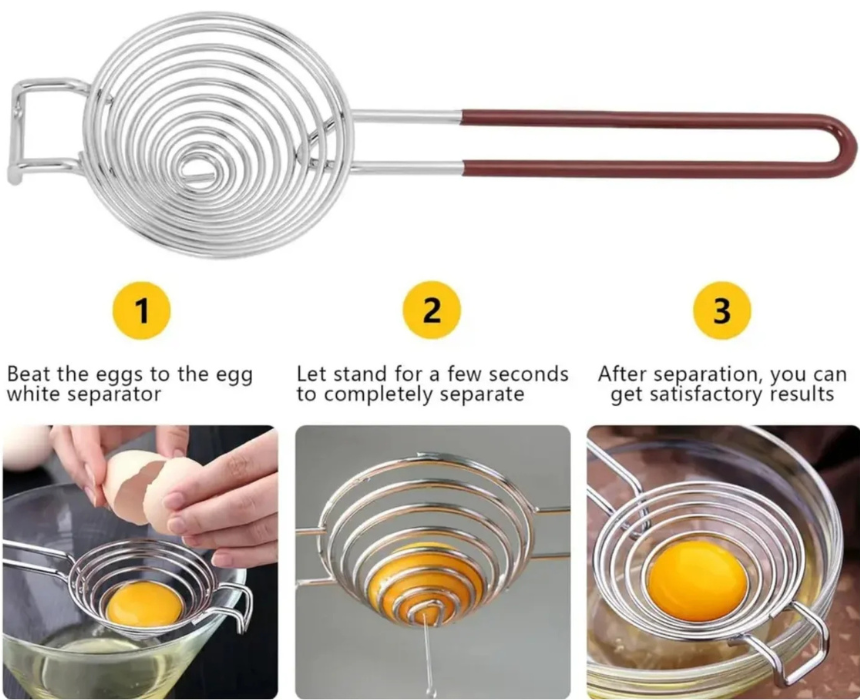 The Egg Sift Stainless Steel Egg Separator is a durable, high-quality 304 stainless steel tool designed for effortless separation of egg whites from yolks. Easy to clean and rust-resistant, it ensures quick, efficient, and hygienic food preparation for home cooks and bakers. Its sleek, compact design makes it a practical and essential addition to any kitchen.