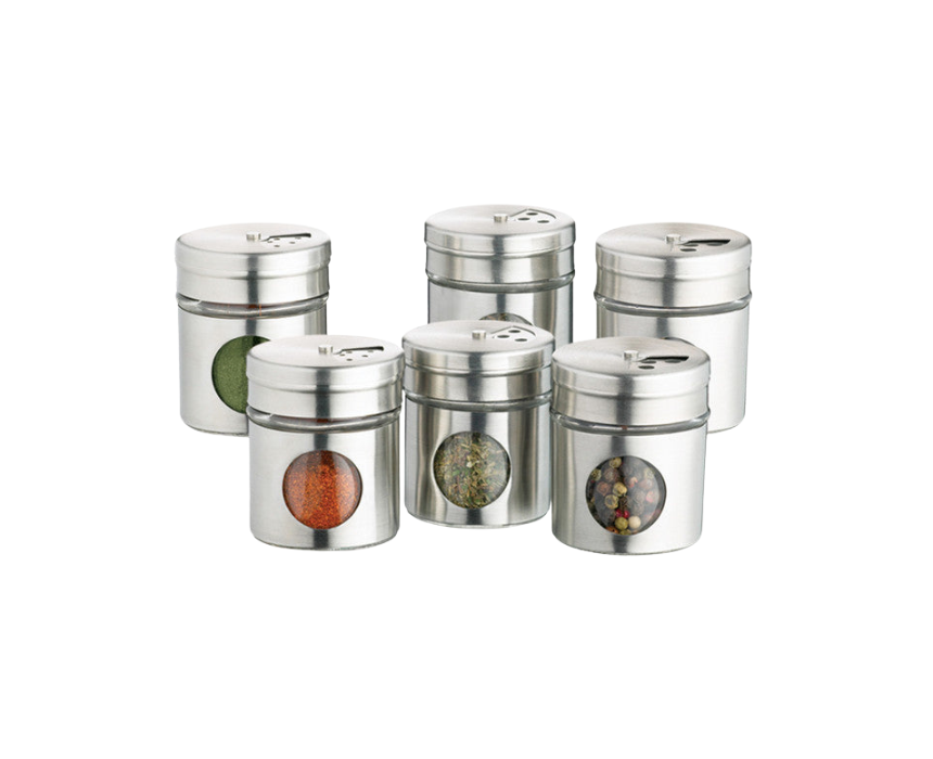 Keep your favorite herbs and spices organized with the KitchenCraft Home Made Herb and Spice Jars. This set of six stainless steel jars features airtight lids, adjustable shaker settings for fine, medium, or coarse sprinkling, and clear windows to easily identify contents. Perfect for any kitchen, simply fill with your chosen herbs or spices and add the right touch to every meal.