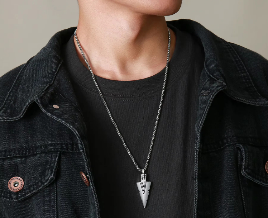 The Stainless-Steel Tribal Arrowhead Pendant combines a durable stainless-steel build with a striking rainbow finish and tribal design. It features a hidden compartment to hold ashes or small keepsakes, offering a meaningful way to keep loved ones close. Stylish and versatile, it’s perfect as memorial jewelry for men.</p