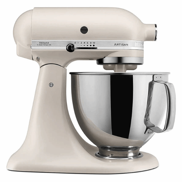 The KitchenAid Artisan Stand Mixer combines timeless design with professional performance, making it perfect for home bakers and passionate cooks. Its 300-watt direct-drive motor, planetary mixing system, and 10-speed settings handle everything from heavy doughs to delicate creams with ease. Featuring two stainless steel bowls (4.8 L and 3.0 L) and versatile accessories including dough hook, flat beater, and whisk, it delivers precision, durability, and style for every kitchen task.