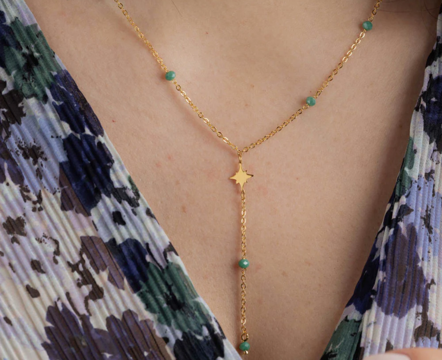 The Star and Beads Choker features a delicate arrangement of star charms and beads, creating a playful and stylish accessory for any outfit. Lightweight and versatile, it enhances casual looks or adds a subtle accent to dressier ensembles. It can be worn alone for a minimalist vibe or layered with other necklaces to create a trendy, layered style