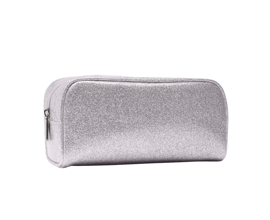 The Stardust Brush Bag is a stylish silver makeup bag designed to protect and organize your brushes. Its spacious interior accommodates multiple brushes and essentials, while the durable, easy-to-clean material ensures long-lasting use. Perfect for daily use or travel, the sparkly finish adds a glamorous touch to your beauty routine.