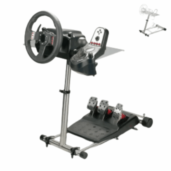 The Steering Wheel Stand for Racing Simulators is a sturdy and adjustable support designed to enhance realism and comfort during sim racing sessions. It provides a stable mounting platform for racing wheels and pedals while allowing height and angle adjustments to suit different driving positions. To use, place it on a flat surface, secure the wheel and pedals, and adjust the setup for an ergonomic racing style.