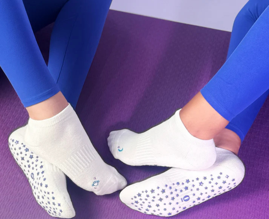 Stellar Grip combines a cosmic-inspired design with supportive grip soles for stability and comfort during yoga, pilates, or lounging. This pair adds a touch of starry elegance to casual outfits and activewear while keeping feet secure and cozy.