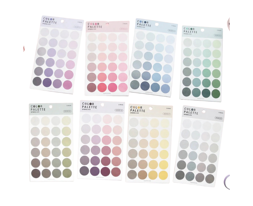 Stickers Color Palette features a vibrant set of stickers inspired by a full spectrum of colors, perfect for decorating notebooks, planners, laptops, and craft projects. The colorful designs allow for creative personalization and easy mixing to match any style or theme. Ideal for school, DIY projects, or creative expression, it adds a fun and artistic touch to everyday items.
