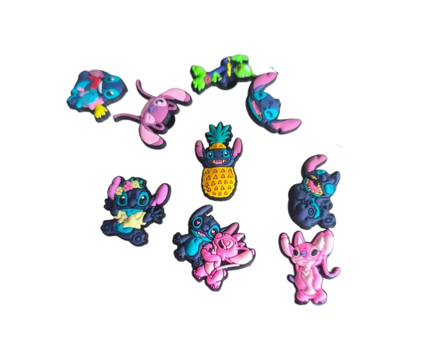 Stitch Crocs Jibbitz Pack of 5 pcs includes fun and colorful charms designed to personalize clogs and sandals. Easy to attach and remove, they add a playful and creative touch to everyday footwear. Perfect for kids or fans who want to show off their favorite character in style.