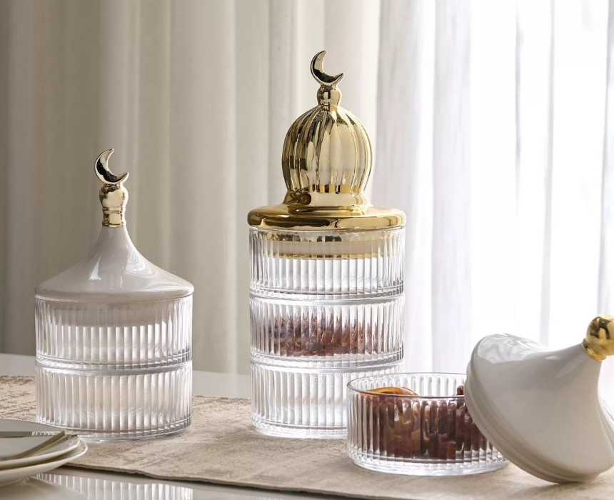 This double layer storage container features a crescent moon handle and is crafted from durable glass with a ceramic lid for a stylish and practical design. With a diameter of 7.6 cm the two tier structure maximises space making it ideal for organised storage of snacks or small items. Perfect for any kitchen or living area it combines functionality with elegant home decor.