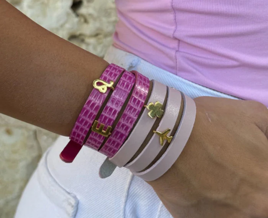 The Strap Leather Bracelet with Charms combines a classic leather band with charming decorative accents for a stylish and versatile accessory. Its adjustable design ensures a comfortable fit while adding a touch of personality to casual or dressy outfits. It can be worn alone for a bold statement or layered with other bracelets for a fashionable, stacked look