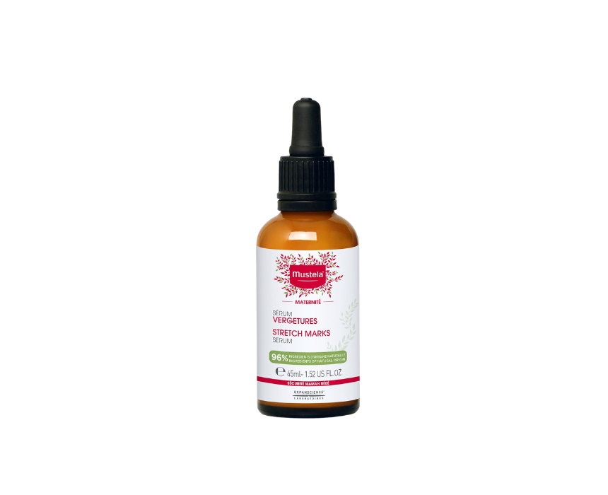 This recovery serum is specially formulated for expectant and new mothers to help improve the appearance of stretch marks by restoring skin elasticity and resilience. With a targeted high-precision nozzle, it allows direct application to recently formed stretch marks. Enriched with shea butter, avocado protein, and hydrolyzed soy protein, it nourishes and strengthens the skin barrier. Safe for use while breastfeeding, it should be applied morning and evening for two months, avoiding caesarean scars, to promote smoother, more supple skin.
