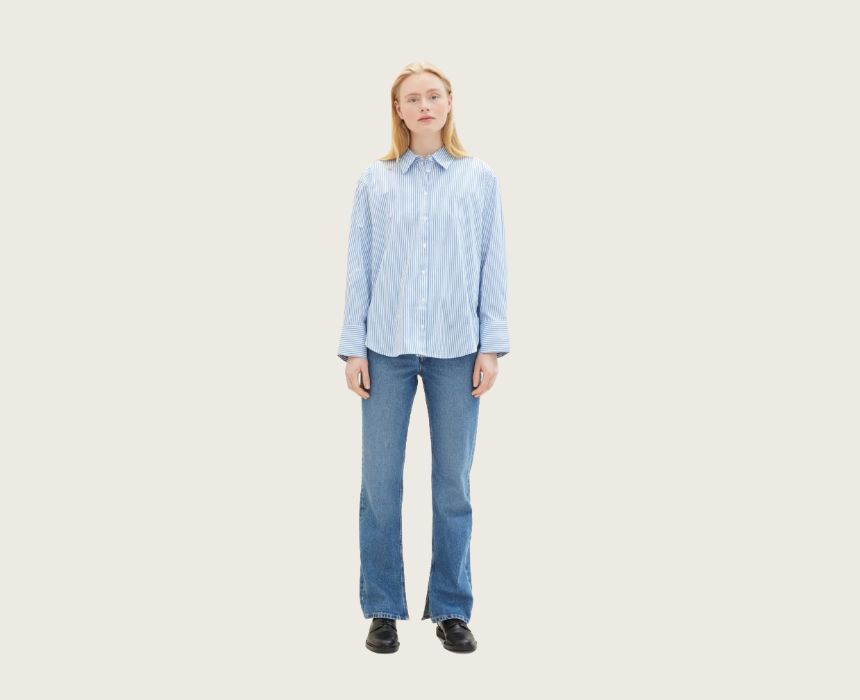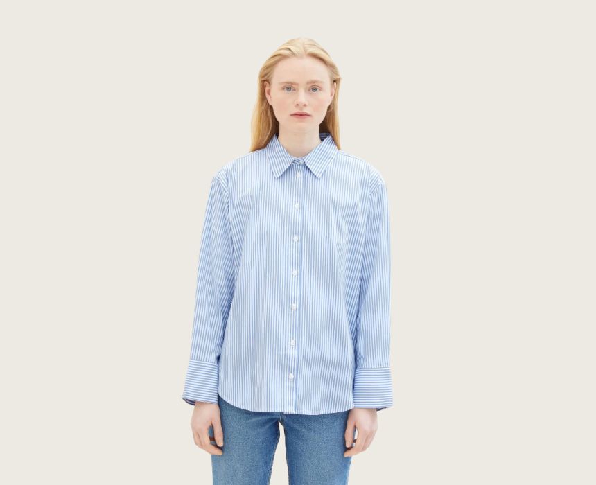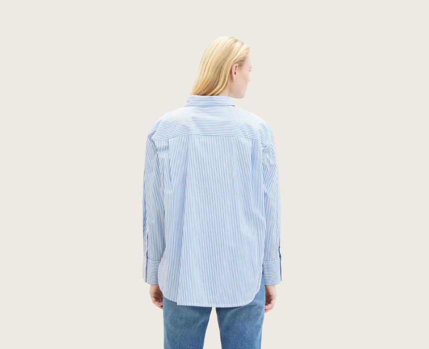 Elevate your casual wardrobe with the Tom Tailor Striped Loose Fit Blue Shirt. Designed with a comfortable loose fit, this shirt features long sleeves, a button-up closure, and a timeless stripe pattern. Made from breathable cotton, it’s perfect for effortless style and all-day comfort, whether paired with jeans or tailored trousers.