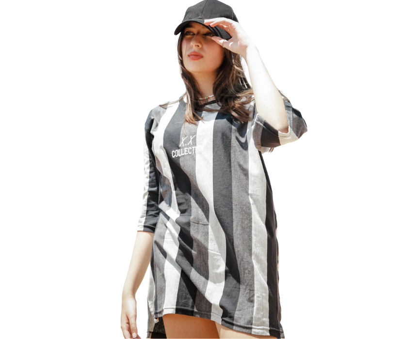 The Striped Tee in Classy Black is a lightweight, summer-ready cotton t-shirt featuring timeless black and white stripes for a versatile, sporty look. Made from 100% cotton with medium sleeves, it pairs effortlessly with shorts, hoodies, sneakers, or boots for casual or active outfits. A wardrobe staple, this tee adds a fresh, clean touch to everyday style.