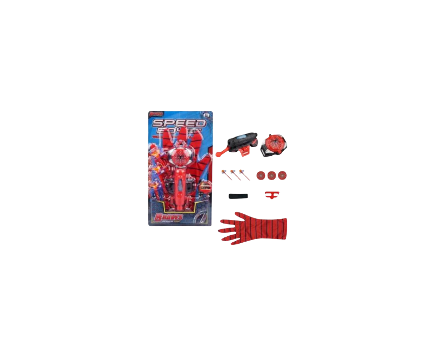 The Super Hero Speed Boy Shooting Glove Set includes a red superhero glove with a detachable launcher inspired by. The launcher fires safe suction-cup darts, promoting imaginative play while helping develop hand-eye coordination and focus. Kids can wear the glove on their hand and aim the launcher for fun, action-packed superhero adventures.