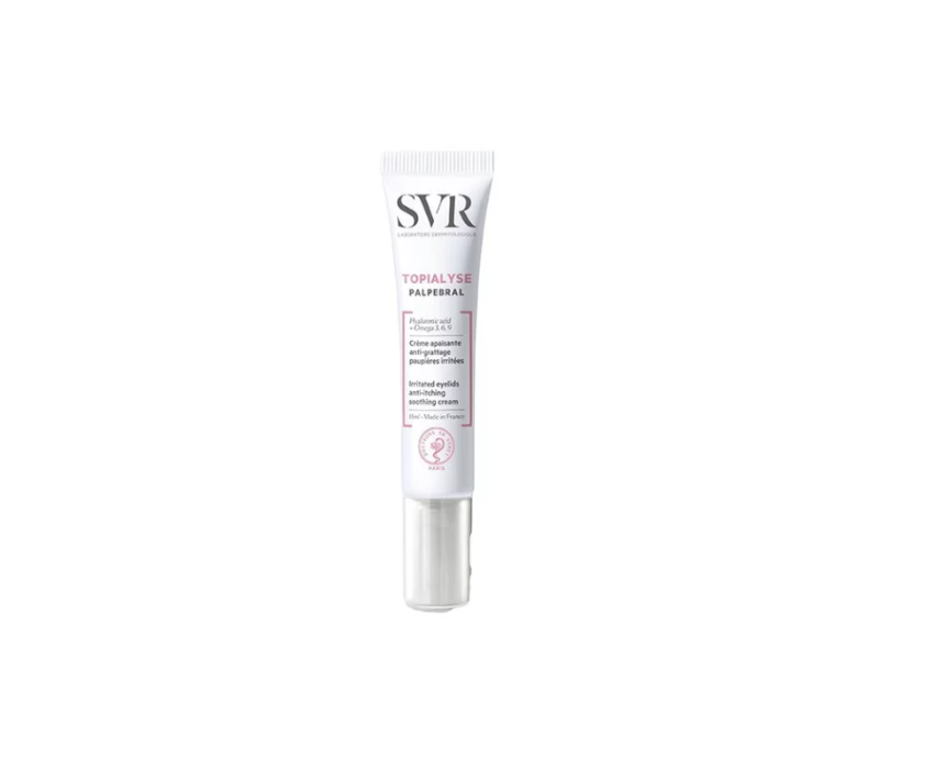 PALPEBRAL By Topialyse soothes sensitive, dry, and irritated eyelids, reducing redness and itching while restoring the skin barrier. Its creamy, hypoallergenic formula hydrates for 24 hours and protects against external aggressors, providing long-lasting comfort. Apply morning and/or night to clean, dry eyelids and eye contour for immediate relief and smoother, calmer skin.